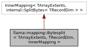 Inheritance diagram for llama::mapping::Bytesplit< TArrayExtents, TRecordDim, InnerMapping >: